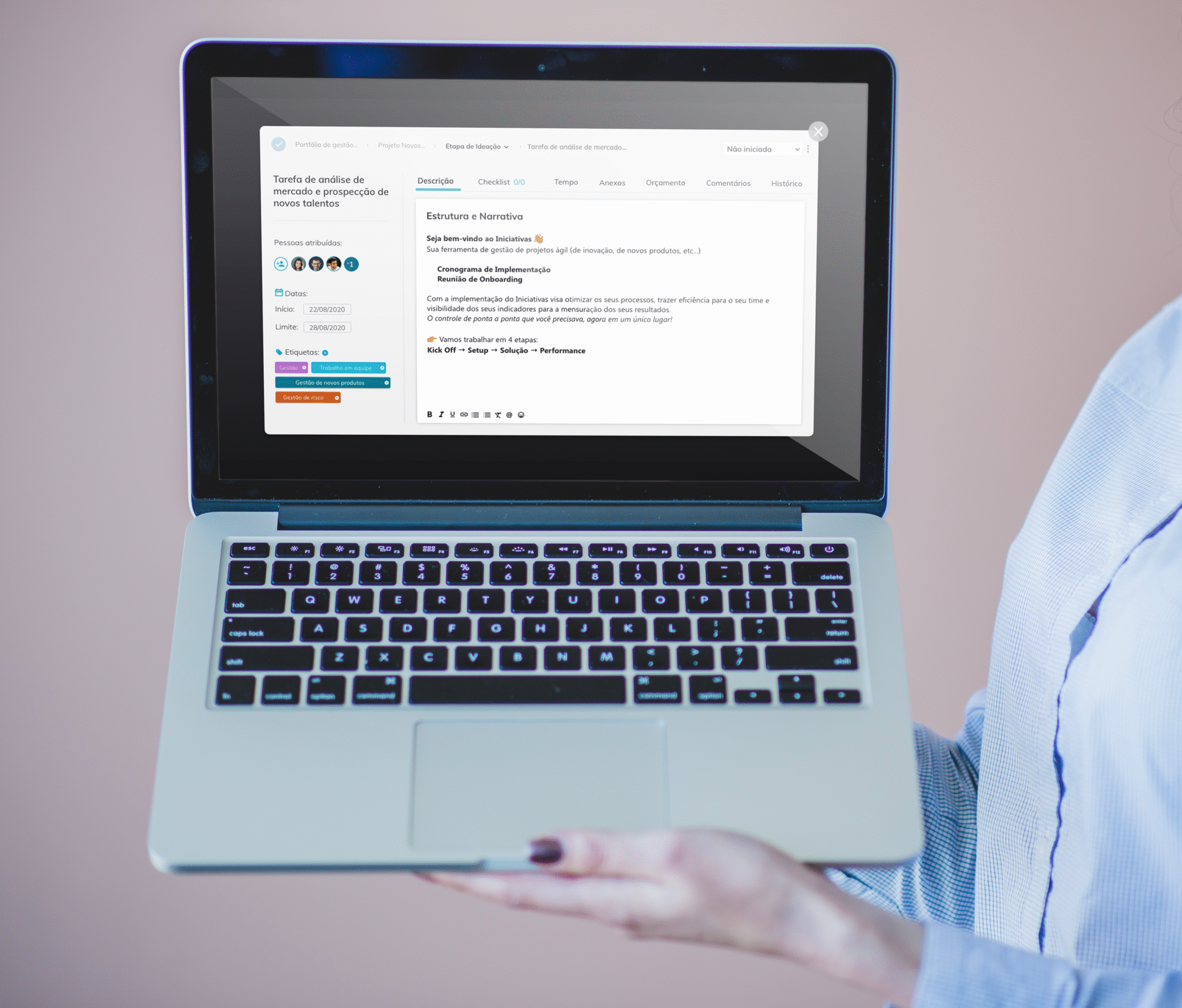 No redesign do modal de tarefas, reorganizei informações e adicionei novas interações, tornando a experiência mais simples, eficiente e escalável